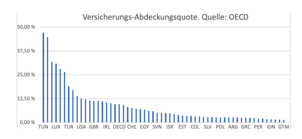 … denn da suchten die Kunden noch aktiv nach Absicherung! Überspitzt gefragt: Warum jetzt nicht mehr? Zumal die Branche Zuwächse in nahezu allen Bereichen feiert. Zugegeben, die Haftpflichtversicherung ist in ihrer Marktdurchdringung im oberen Bereich. Nur die gesamte Marktdurchdringung ist weit von der 100%-Marke entfernt (siehe Tabelle). Die OECD Statistik zeigt die Versicherungsdurchdringung in Prozent, gemessen an Beitragssumme im Verhältnis zum Bruttoinlandsprodukt (BIP). Während sie in Finnland bei fast 50% liegt, pendelt sie in Deutschland bei nur 7% ein. Hat sich der Wunsch nach Sicherheit oder “Versicherung” hierzulande im Laufe der Jahre gewandelt?